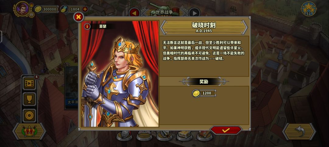 【战役模式新增2章困难关卡】战役模式中,新增了第5、第6两个章节(火器时代和工业时代)的困难模式。当前章节所有关卡3星通过,可以点击左上角的旗帜图标便可切换到困难模式。满星评价通关章节的困难模式可以解锁特定奖章。 ▍火器时代 ▍工业时代 【新增将领友好度系统】 在将领界面新增将领友好度 通过赠送将领礼物可以提升友好度,友好度到达不同等级会有不同的属性加成。 此外,此次更新还优化了训练将领的金币消耗