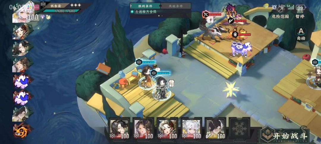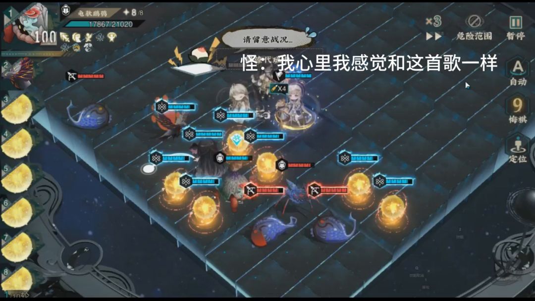 增益控制远击,绝技选定敌方造成物理伤害并对周围敌人额外物理伤害,啸剑和蓄势都是20%(2回合可叠2层)肃静无法放职业和绝技(1回合)。 被动一自身暴击率提高额外伤害的伤害提升,常击回能量且受到绝技敌方获得肃静 被动二绝技攻击前敌方单体已损失血量加攻击有上限如果受击单体满血回复消耗能量 被动三自身瞄准冷却提高在瞄准状态,有2层啸剑和蓄势,攻击后可传送到队友周围一格,一格内攻击力最高的队友有2层啸剑和