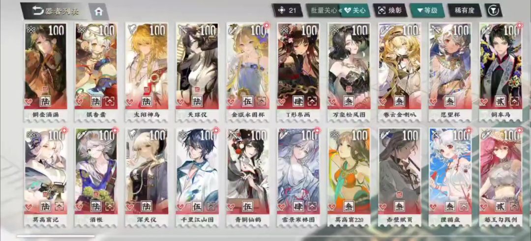 新增:三兔藻井、焕彰十二花卉杯、焕彰铜奔马 梯度上升:秦公镈(职业技提供的技能增伤非常适配目前的几位最强输出) 没有梯度变化的角色就不展示在强度榜里了,想看全器者的可以找往期 简评一下新增角色: ①三兔藻井:上拐效率非常强的一位角色,完美解决了当前速通队的buff覆盖率问题,一个人就能完成以前商周+仙鹤的buff覆盖,其传送上buff不仅解决了当前大部分关卡2+2+2站位上buff难的问题,还解决