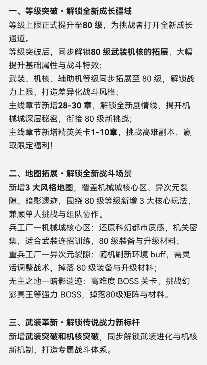 感觉武装,机核觉醒后没普通玩家什么事情了,还有80级矩阵。够搞笑的了,完全是逼玩家花钱,冲冲冲。 估计一年后高氪单战突破60万,普通玩家不到20万的单战不知道怎么玩!到时候还有新配件,新战力要求的副本。 时装没隐士,到明年普通玩家估计炼狱塔都没通关,和昨日的机武塔何其相似。 下次直接写低氪玩家不要玩算了。