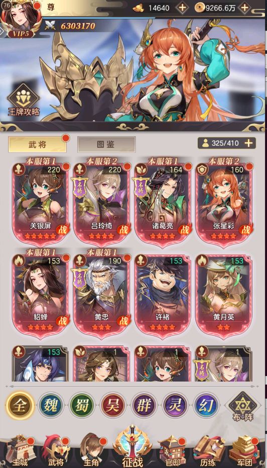 蜀国:赵云,张星彩,关银屏(该武将的特色会造成追加敌方生命上限的伤害,遇到那种刷boss的活动可以打出非常高昂的伤害),刘备