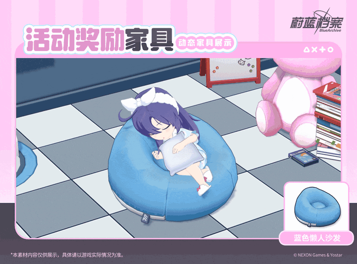 全新成员&家具互动动作即将更新!在咖啡厅配置“可互动的家具”后,当特定成员来访时,就会与家具产生交互动作!■ 更新时间04月30日 维护结束后■ 互动更新• 优香(睡衣) & 蓝色懒人沙发蓬松柔软的质感是舒适安逸的证明。希望优香能更安心地享受懒人沙发,不要因为片刻的休息而感到有负担。• 诺亚(睡衣) & 白色懒人沙发这安静一隅很适合翻阅悠闲与惬意。简洁的浅色款式无疑是诺亚的品味,