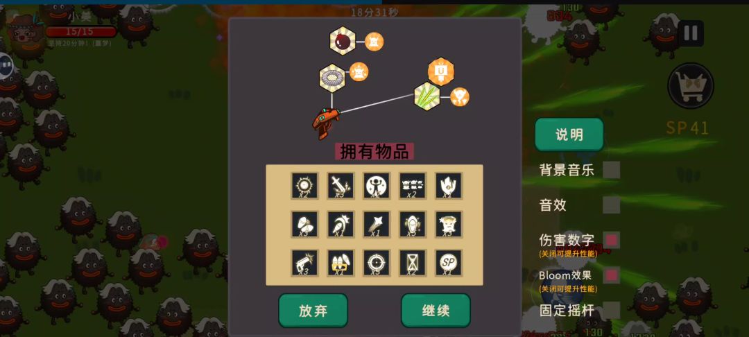 喷火枪选择站立buff 枪技能随便选 最后选择吃经验就行 buff选杀人有几率分裂 和子弹增大 再选几个杀500回一滴血 闪避回血 各种回血buff 就可以放在旁边看了#攻略#新手攻略