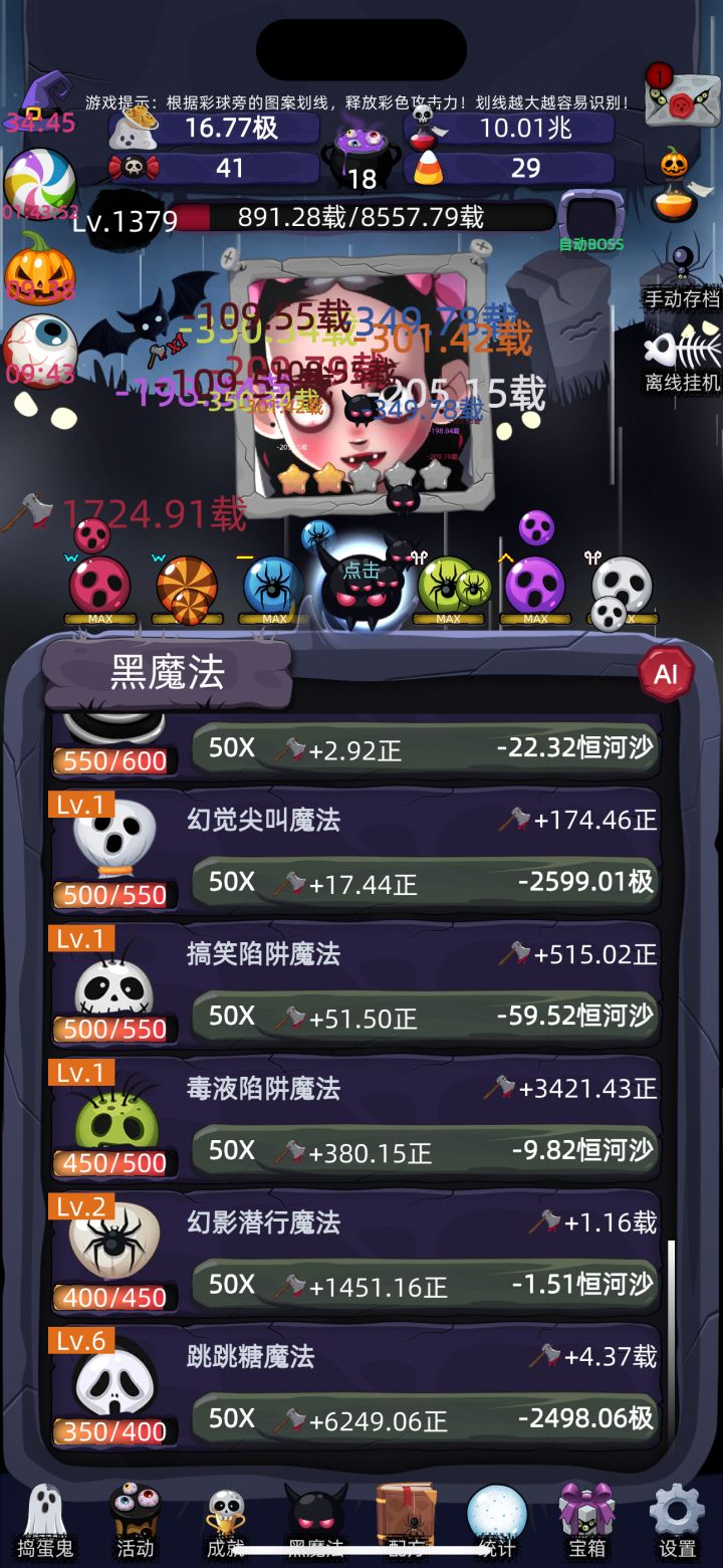 一点小心的关于派对点亮:要先点下面的开启派对,然后看开启效果,然后安要求慢慢刷,刷满了就刷下一个,有时候可能半天刷不出来,有可能转一次就好了,只要刷出来了就生效,不管开没开这个派对。转生:后面5 6转很难刷到前面的10倍,右上角南瓜合剂1小时过后就可以开始转了。