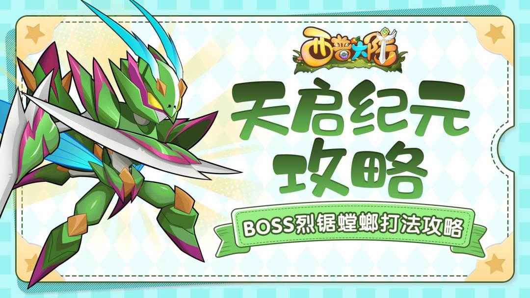各位小西普好呀,今天普普为大家带来了天启纪元BOSS“烈锯螳螂”的打法攻略,让我们一起来看看吧~ BOSS信息: 等级:80 级 生命值:3147 系别:草系,被电系、钢系克制 特性:振奋(击败对手时,恢复25%最大生命值) 常驻状态:复苏(生命值低于50%会使用技能“复苏”,清除自身所有负面状态,恢复自身50%生命值) BOSS技能: 叶刃Ⅲ:威力75,物理攻击,暴击率+50% 处决Ⅲ:威力56