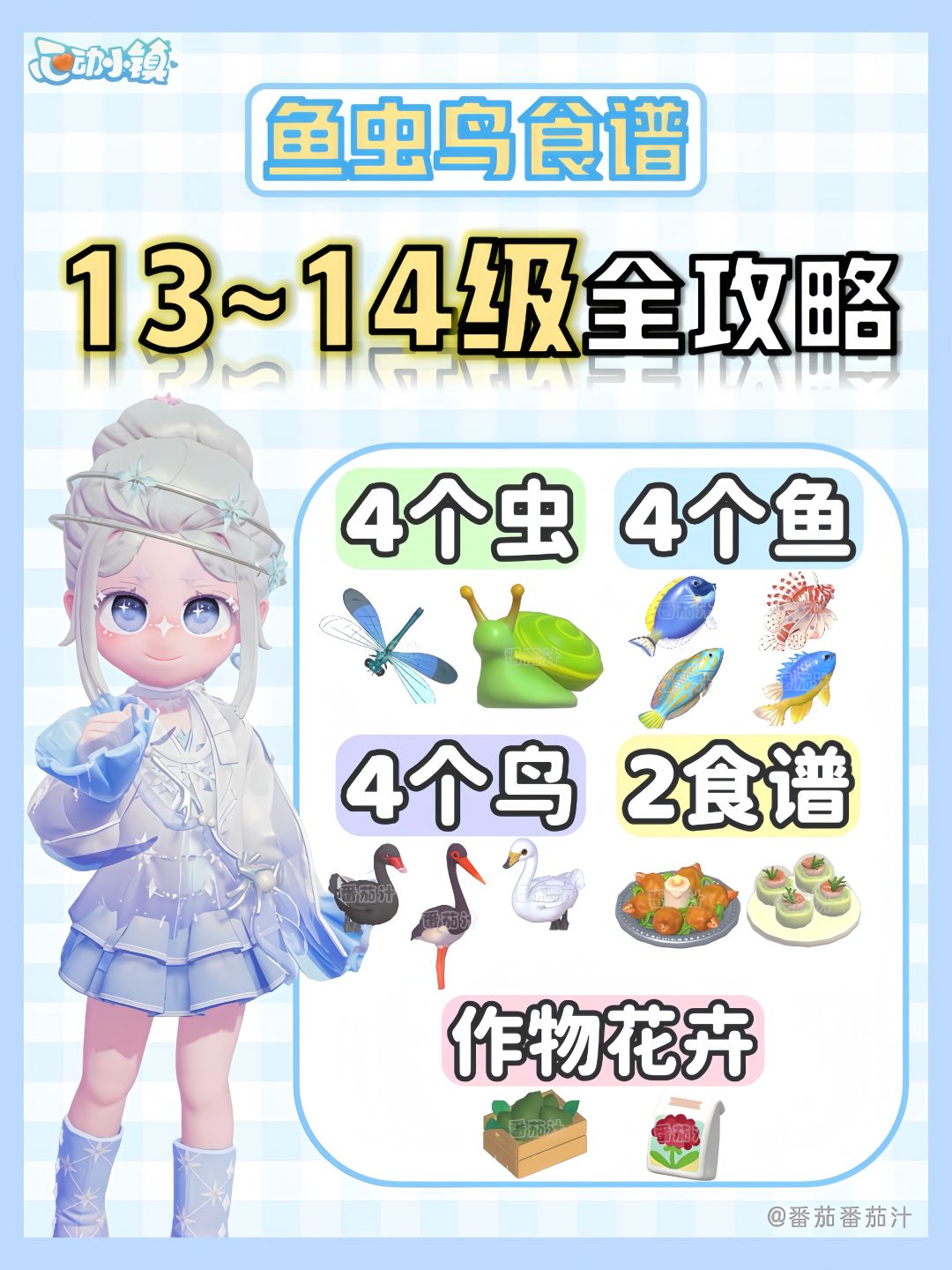 从上到下、从左至右,按照图鉴顺序排列~ 观鸟小tips: 观鸟等级不够、拍到高等级鸟是无效的; 鸟基本全是全天段出现,部分鸟对应天气才会出现,左上角有小星星的,就是有天气限制的鸟,大家稍微注意下哦; 前期需要刷等级,可以对着一只鸟一直拍照,刷观鸟经验; 有些地方要注意观察树,鸟有可能藏在树上; 点个收藏,随时查看更方便[表情_开心]~ #心动小镇 #心动小镇攻略征集
