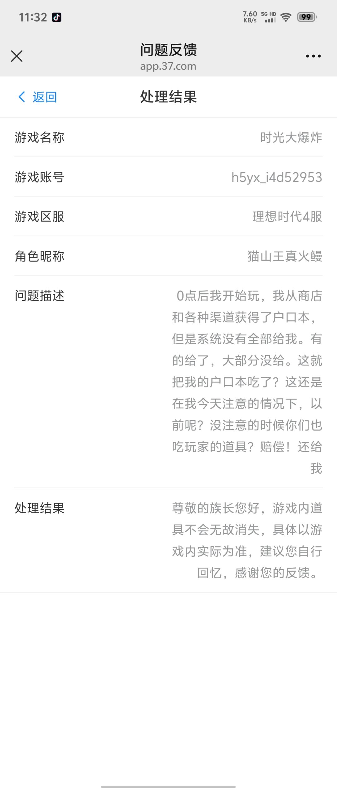 视频里第一个奖励5户口拿到了,第二个奖励5户口,点开一看左下角还是4户口164迁徙。那不是证明第二个5户口奖励根本没给我吗。这么明目张胆的吃玩家道具。 今天看到才注意。要是以前也有被吃?那可不是这一点两点的东西了。 发给客服,还叫我自行回忆。给我整笑了。回忆nm呢