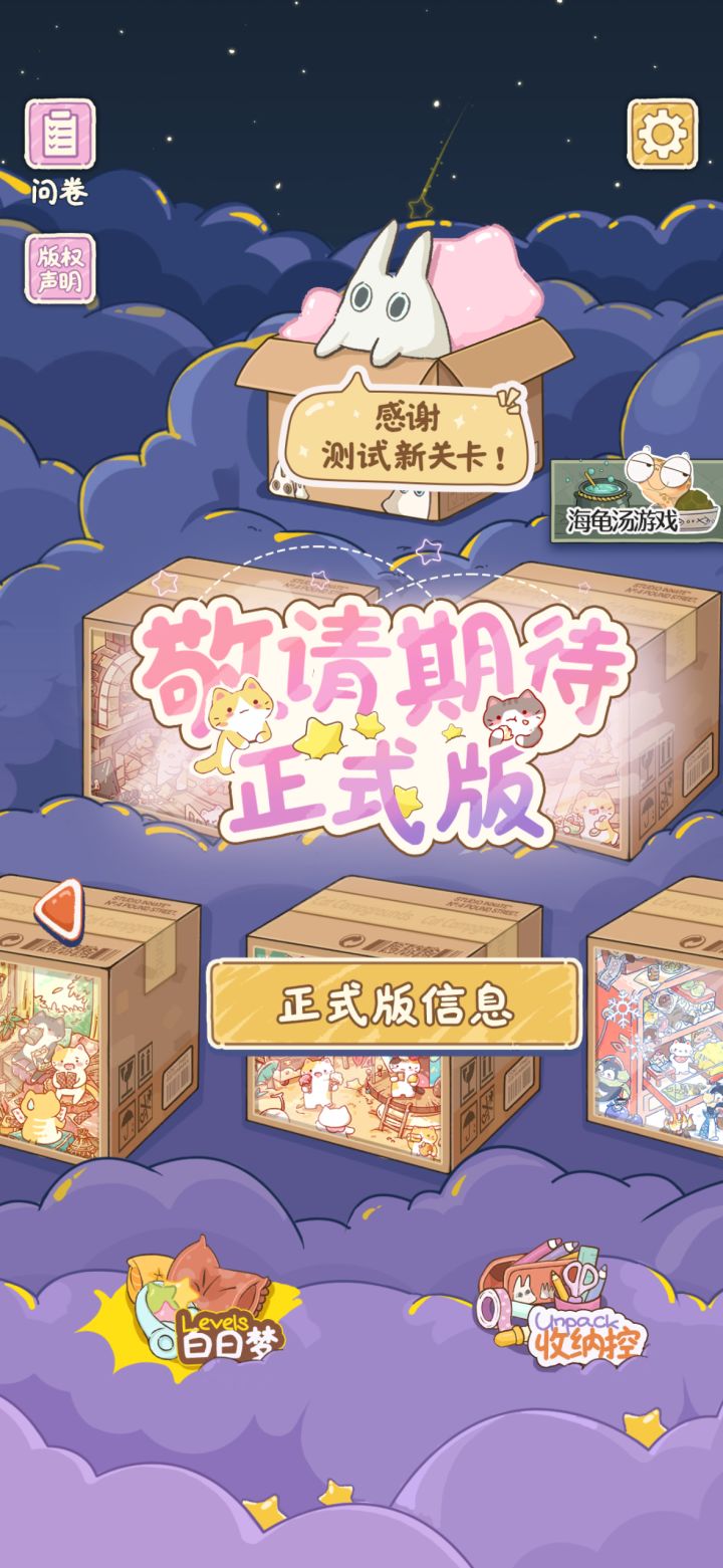 看到这款游戏上线的时候 感觉画风很好看就下载玩玩了 后期解锁还不知道要等到什么时候 对于一个特别喜欢收纳 贴纸模拟游戏的玩家来说画风很好看 但是音效很不适合 贴纸就要有真实的贴纸声音,而不是叮咚那种跟收纳声音是的。还有他们说的兔子我很喜欢 希望作者可以多优化一下兔子的画风 当然我也很喜欢现在的 兔子最好动作更多一点 这样感觉会更生动 让玩家跟游戏有更好的体验感。后期收集地图希望不要太难 玩游戏就是想开心 不要太复杂
