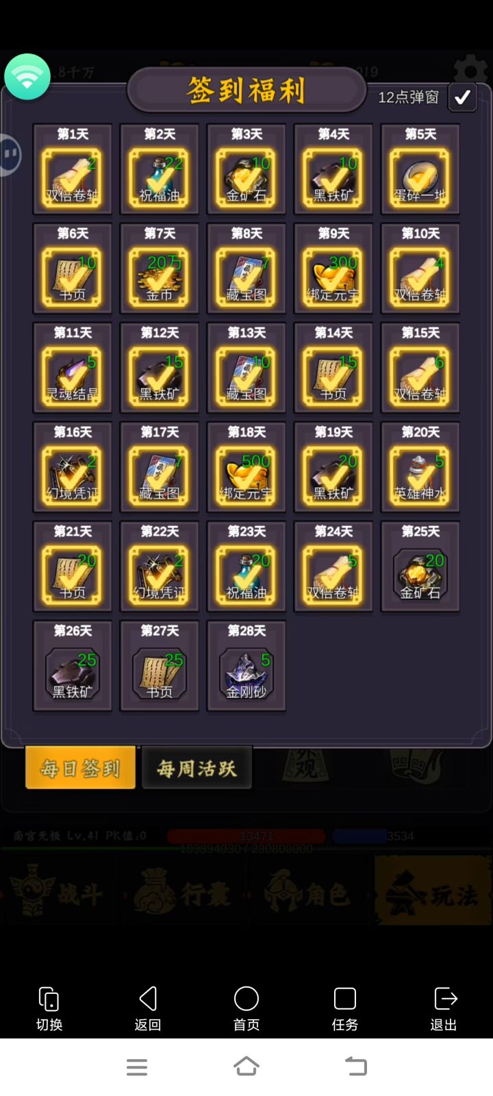 杀完鸡继续挂机中间有空找一下地图上boss杀了会给好装备,继续升级到23级,这时候就有包月了,升级飞快。