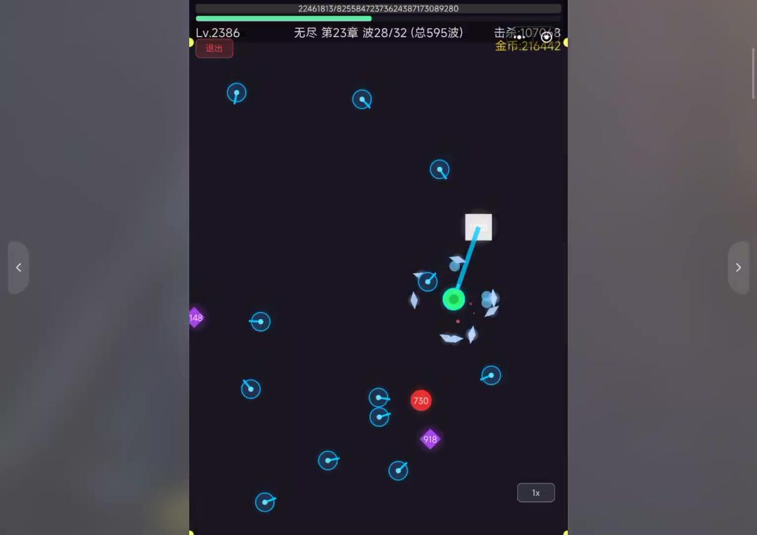 到后面可能是弹数叠的太快了,数值太超标了,子弹直接被吞了,怪打你也打不死
