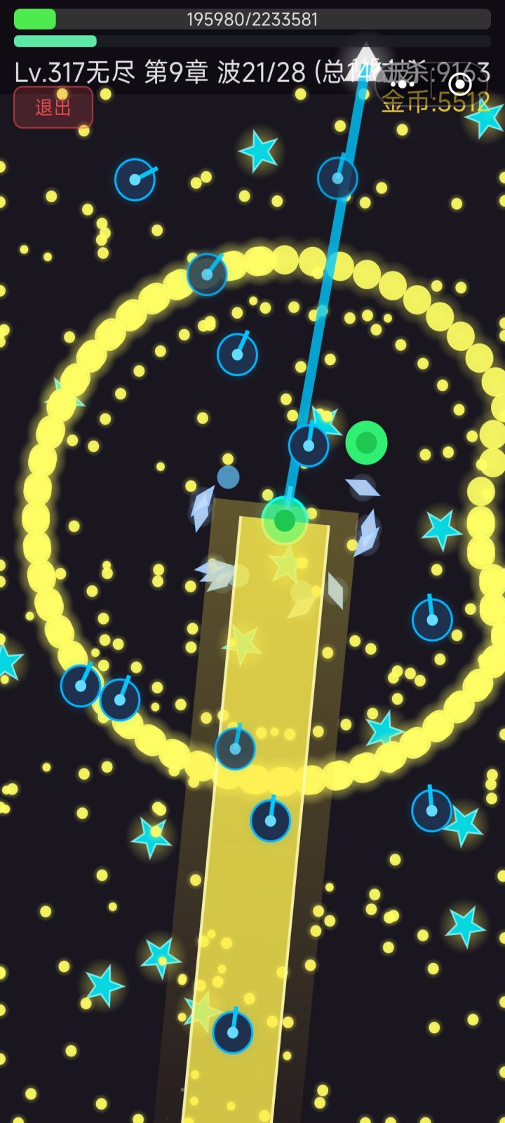 这个自愈我点了两层了,截图看不出来,不过回不了血,还有这些近战技。他竟然不是以自身中轴为点围绕身旁的加一个技能,它是在特定的位置生成的两个不是围绕着我转导致他们很容易叠在一起,发挥不了实际作用。那个电球也是。强迫症最好别玩。那护盾是一次性的。帮你挡了两次,还需要重新点。在第三关要先把紫色的给打了。那个玩意太逆天了。攻击间隔短,攻击距离长。很容易封走位。上限就1_10层这么高很容易点满的。点满之后就