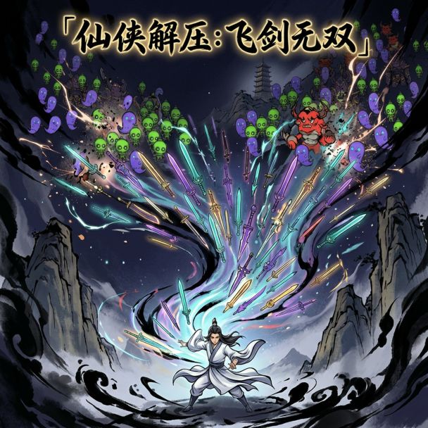 水墨仙侠风解压射击游戏。御剑斩妖,积累击中解锁六把神兵,所有飞剑齐发,万敌皆灭!每波结束境界突破,选择强化路线;仙缘修炼永久道基,越打越强。支持断点续战、离线修炼收益和全服排行榜,一局三分钟,随时解压。