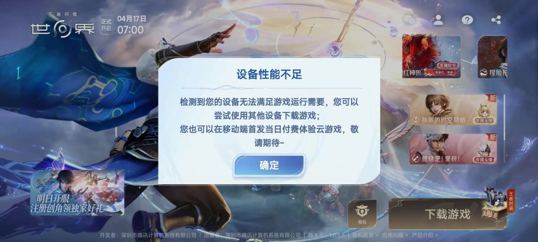 主包手机配置不达标 玩不成王者荣耀世界?