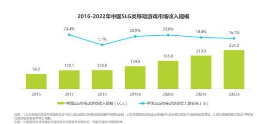 根据艾瑞咨询发布的“中国SLG类移动游戏线上营销 市场研究报告”,除了2018年版号因素的影响,SLG手游在2016年到2020年之间的营收增长,每年都保持在20%以上。截至2020年,SLG手游的市场营收规模预计为185亿。单从市场营收情况来看,SLG已经成为了手游市场的主流品类