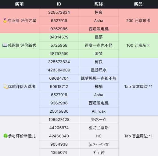 评价活动是TapTap官方举办的社区活动,旨在征集高质量的评价内容,与厂商无关。