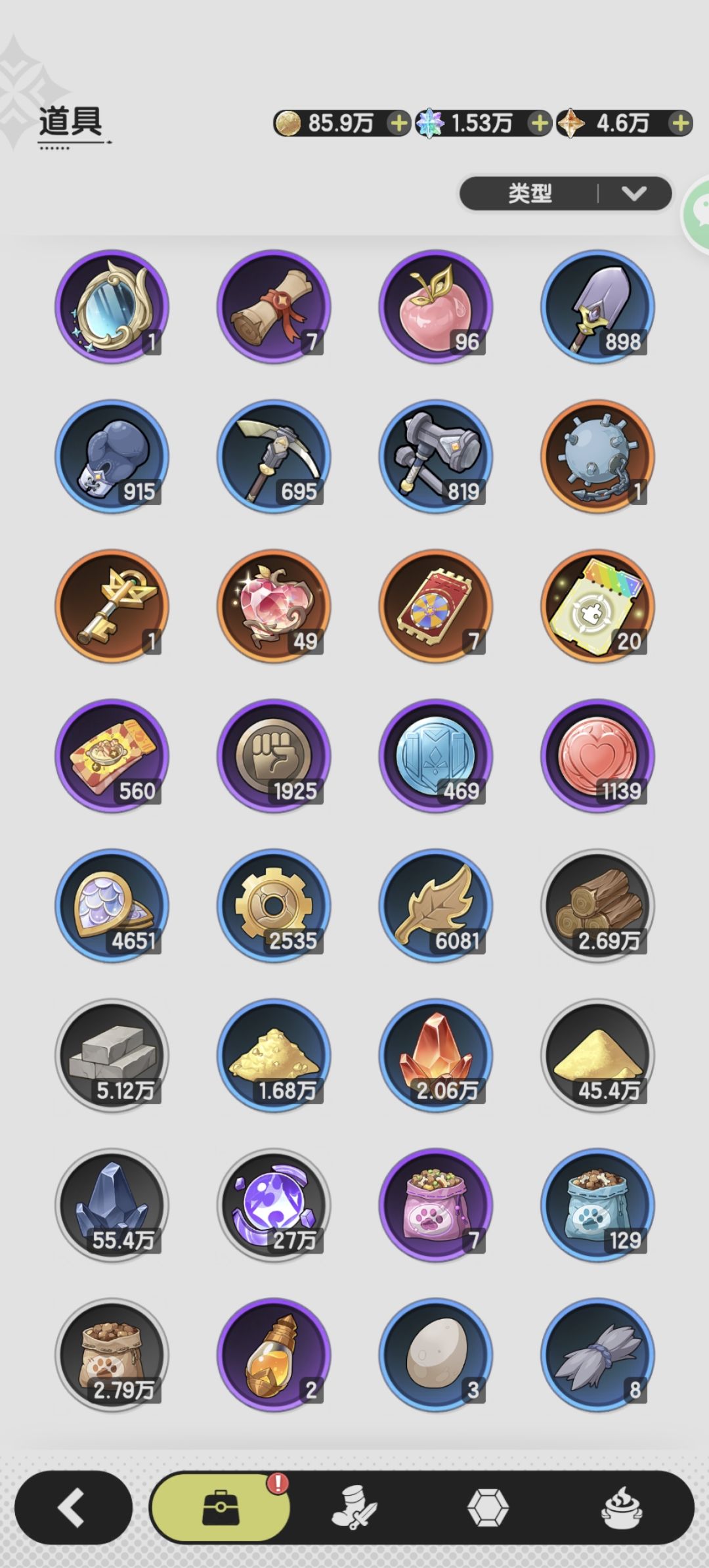 素材3300+,50w+铁、砂,小推车倒数第三天满级。第一周4224,后续全程4444。