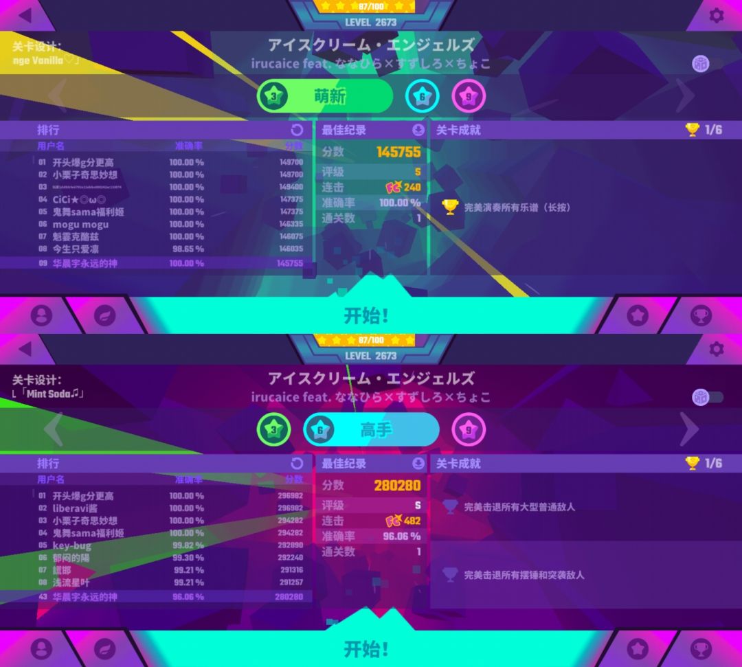 仅2-6级,无喵儿跑传说(没有排行榜而且我只玩了单人模式没法AP)