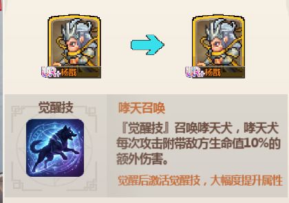 首先是觉醒技能-哮天召唤:召唤哮天犬,哮天犬每次攻击附带敌方生命值10%的额外伤害
