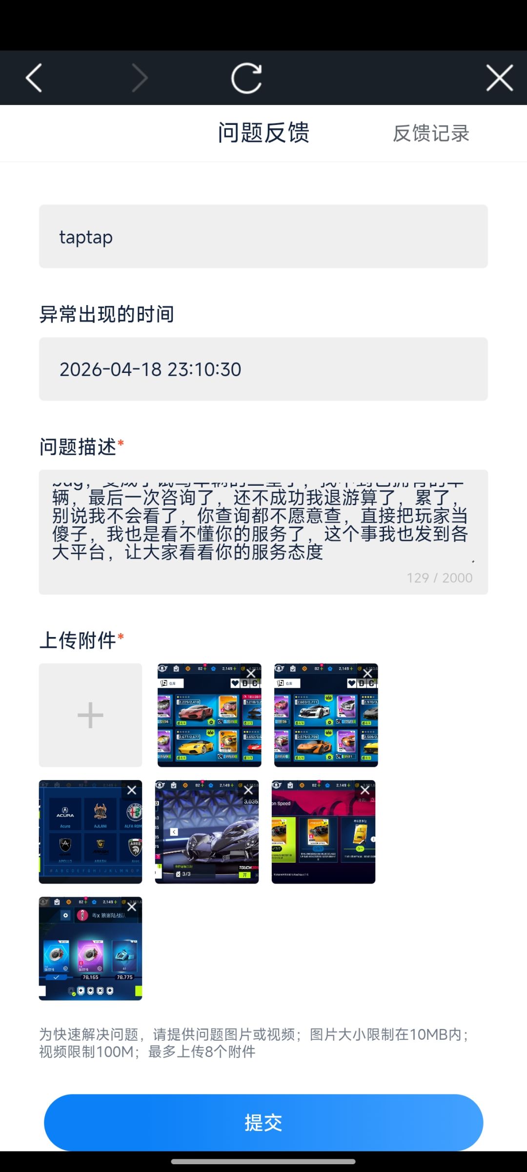 大哥,我热爱这个游戏才玩的,昨晚好不容易肝出来碎片,结果变成试驾车两星,你让我怎么说?车库里也找不到,游戏客服不作为,直接把我当傻子,真有我还会麻烦你?